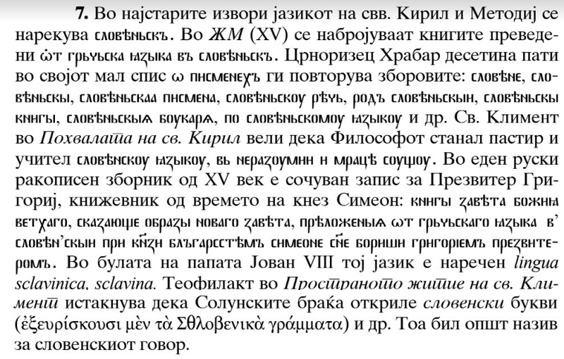 – Создавањето на староцрковнословенскиот книжевен јазик во 9 век е важен историски настан од европско значење. Освен грчкиот и латинскиот, староцрковнословенскиот стана четврти литературен европски јазик во полната смисла на зборот; постари се само готскиот (4 век), англо-саксонскиот (7-9 век) и старовисокогерманскиот (8 век). Преводот и практикувањето на словенската литургија, пак, има посебно значење и привилегија. По грчкиот и латинскиот, словенскиот бил трет европски јазик на кој било дозволено да се извршува литургија со што, според средновековното сфаќање, тој се осветувал како и чесните дарови на службата што се осветуват со негово посредство. Од огромно значење е делото на Браќата и поради идеолошката подлога која, како силен фактор за понатамошен прогрес, ја поттикнала акцијата за создавање и книжевност на тој јазик …