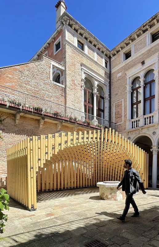 Oва не е првпат канцеларијата на УНЕСКО да биде домаќин на македонскиот национален павилјон на Биеналето во Венеција. Годинешната изложба е првиот голем меѓународен културен настан повторно отворен за време на пандемијата, рече Матео Росати, претставник на Регионалната канцеларија на УНЕСКО во Венеција во чиј атриум е поставен проектот „Сега“.