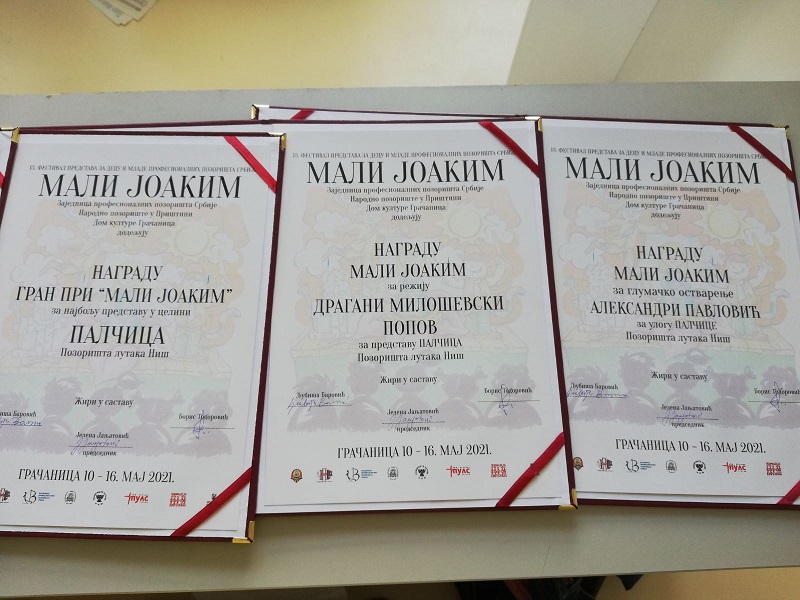 Претставата „Палешка“ што ја адаптираше и режираше Драгана Милошевски – Поповa го освои Гран-прито на Фестивалот за деца и млади „Малиот Јоаким“ што викендов заврши во Грачаница, Косово. Освен за најдобра претстава, „Палешка“ ги освои и наградите за режија, за сценографија (Зорана Петров), за костимографија (Стефан Савковиќ), за најдобра женска улога за актерката Александра Павловиќ за насловната улога, како и специјална награда за повеќе епизодни улоги за актерката Јелена Ѓорѓевиќ.