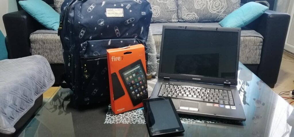 Слично почна и идејата за собирање и на ИТ уреди. Како почна учебната година, забележав дека не секое дете вклучено во настава на далечина има потребен уред за да биде активно во наставата. Повторно преку објава на мојот ФБ профил почнавме да собираме десктоп компјутери, лаптопи и таблети. Пристигаа од повеќе места и лица. Од сограѓани кои сами ми пишуваа пораки и ми носеа функционални уреди, компанијата „Лион “ од Свети Николе донираше 4 десктоп компјутери со сите елементи потребни за онлајн настава, компанијата „Данита Ник“ донираше 3 лаптопи, монитори, сервисерски услуги. Ме контактираше администратор на групата „Македонци во Германија – Makedonier“, Петар Наумовски кој со помош на наши хумани иселеници во Германија сакаше да се приклучи во двете акции. Така до мене стигнаа 3 пакети од Германија кои беа поделени на најранливи категории на деца. Тие стапија во контакт и со неколку други наставници во државата, па се поделија пакети во рурални училишта во Крива Паланка, Крушево, Куманово. Во оваа соработка се вклучи и Томи Митиќ, наш сограѓанин кој живее и работи во Германија, кој освен во собирање на училиштен прибор, својата хуманост и стручност ја покажа во поправање на лаптопи собирани за оваа акција и ги испраќаше во функционална состојба. Сите уреди лично ги проверував, по потреба форматирав, инсталирав сè што е потребно за да бидат предадени до учениците во состојба за работа. Кога не успевав да постигнам сè, бидејќи напоредно се одвиваа двете акции, помош добивав и од пријатели.