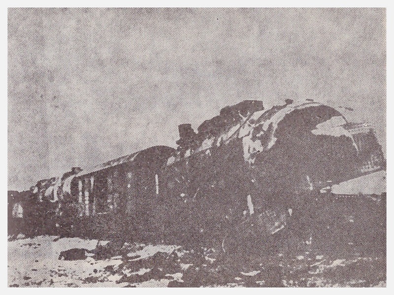 Уништената локомотива по диверзантската акција во септември 1941 година (Од монографијата „Партизанското движење во Скопје и Скопско 1941-1945“ од Александар Спасовски, Скопје 1984)