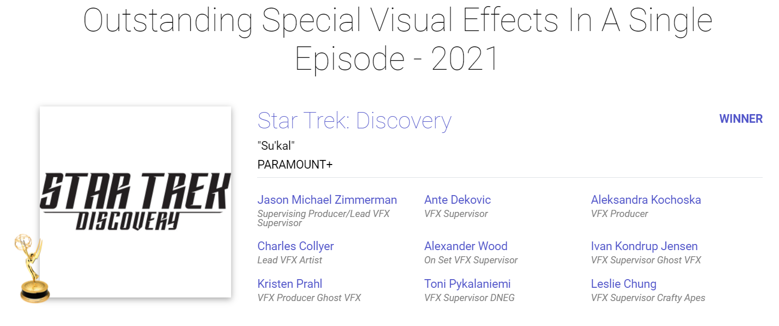 Александра Кочоска-Дековиќ, продуцентка на визуелни ефекти на неколку американски хит-серии ја доби престижната награда „Еми“ на синоќешната свеченост во Лос Анџелес. Нејзиниот тим е награден во категоријата исклучителни специјални визуелни ефекти во поединечна епизода, за Su’kal во серијалот „Ѕвездени патеки: Откритие“.