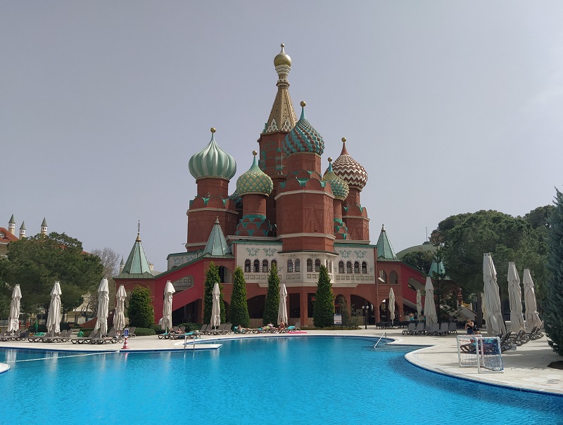 – Ова е единствениот хотел од овој тип во Турција. Имаме многу гости од цела Европа. Сè што гледате е копија на Кремљ, познатите објекти се изградени со ист број цигли како оригиналите. Поради актуелната состојба, годинава за жал немаме гости од Русија и од Украина. Комплексот работи во текот на целата година – вели менаџерката на хотелот.