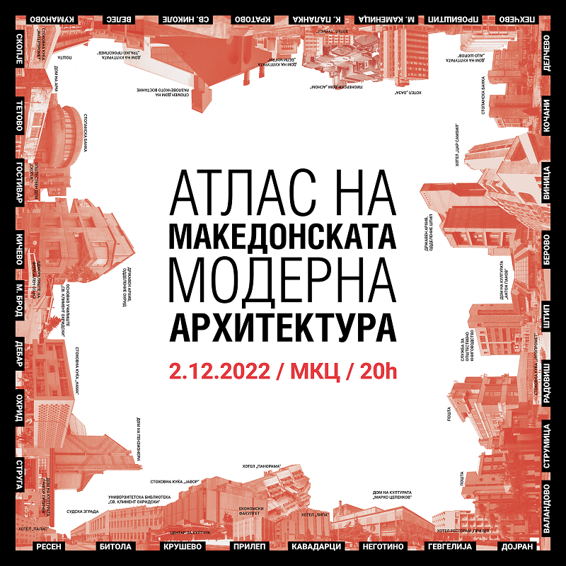 „Атлас на македонската модерна архитектура“ е насловот на изложбата која синоќа беше отворена во Младинскиот културен центар во Скопје. Изложбата е резултат на истражувачки проект чија основна цел е препознавање, документирање, проучување и вреднување на модернистичкото архитектонско наследство од втората половина на 20 век на територијата на денешна Македонија. Проектот регистрира и мапира повеќе од 500 индивидуални архитектонски реализации изградени од 1945 до 1985 година, од кои преку стотина се документирани, а повеќе од 40 избрани градби се претставени во форма на тродимензионални архитектонски модели.