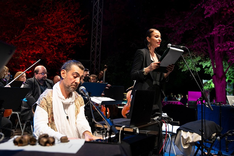 Музичка и колоритна бајка му се случи на Градскиот парк синоќа, за време на концертот на Дуке Бојаџиев и пријателите, што се одржа во чест на денешниот Ден на Европа. Беспрекорно звучеа и се претопија во прекрасниот амбиент на Градскиот парк звуците на пијаното, на оркестарот, на уметниците од повеќе земји, па слушнавме и сантур (Бахрамџи), перкусии во интерпретација на Медуса Одисеј, вокалистките Миријам и Иса, како и актерките Наташа Петровиќ и Амернис Нокшиќи, кои интерпретираа стихови од поетот Руми, 20-члениот оркестар составен од членови на Македонската филхармонија, сето тоа под диригентство на Ана Спасовска.