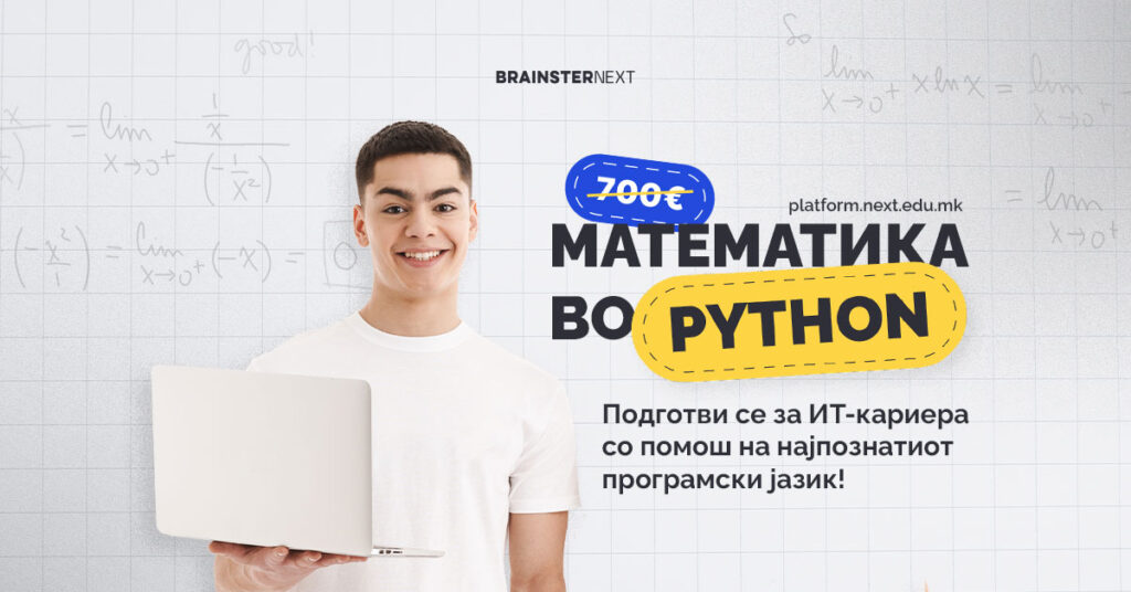Бесплатен онлајн-курсот Математика во „Пајтон“ обезбеди првиот акредитиран практичен ИТ-факултет „Бреинстер Некст колеџ“ за да ги поттикне учениците да го искористат програмирањето при справувањето со математичките предизвици, но и да им помогне да ги подобрат математичките вештини и способностите за решавање проблеми. Курсот е единствен од ваков тип кај нас, содржи повеќе од 13 часа снимен материјал – 124 видеолекции на македонски јазик во кои се обработуваат повеќе математички области со помош на најпознатиот програмски јазик „Пајтон“ (Python). Курсот го креира Петар Јолакоски, професор на факултетот и помлад истражувач во Центарот за компјутерски науки и информатички технологии во МАНУ.