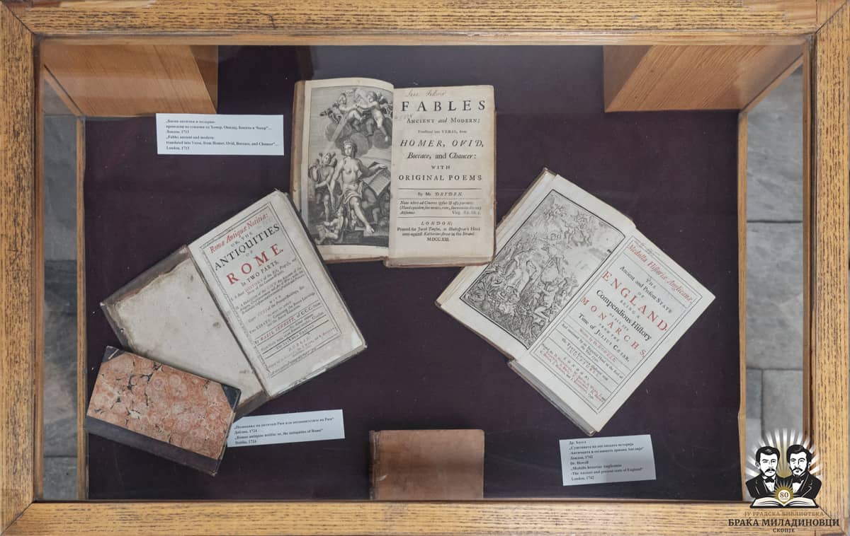 Во холот на библиотеката е поставена изложба на ретки книги од 1566 до 1954 година, значајни за науката, културата и уметноста. Збирката содржи старопечатени книги на македонски јазик, старопечатени книги на латиница од 16 до 19 век, старопечатени книги на кирилица и старопечатени книги на арапски и турски јазик. Библиотеката издаде и ексклузивен каталог, а изложбата за јавноста ќе биде отворена до 26 ноември. Јубилејот се одбележува под слоганот „Дом на сите приказни“, а автор на визуелното решение е дизајнерот Лазе Трипков.