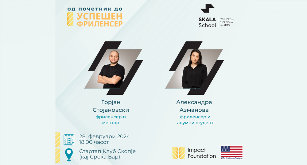 – Ќе имате можност да слушнете како успешни фриленсери пливаат во водите на фриленсингот и да дознаете како да го претворите вашиот талент и знаење во успешна кариера без локациски и временски ограничувања – посочува Огнен Јанкуловски, координатор на проектот од Импакт Фондација.