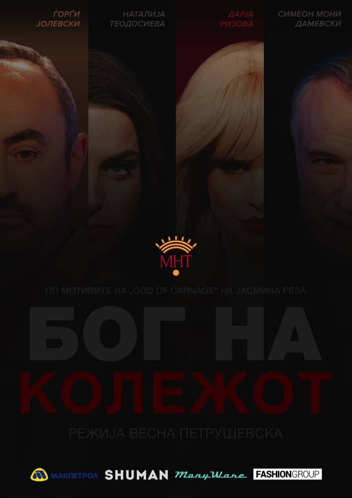 На големата сцена во Македонскиот народен театар на 24 декември во 20 часот ќе се одигра премиерната изведба на претставата „Бог на колежот“, по мотивите на „God of Carnage“ на Јасмина Реза, а во адаптација и режија на Весна Петрушевска. Ова е седмиот проект на Македонскиот народен театар во оваа сезона. Во претставата играат: Ѓорѓи Јолевски, Дарја Ризова, Симеон Мони Дамевски, Наталија Теодосиевa како и децата од Актерската школа на Весна Петрушевска.