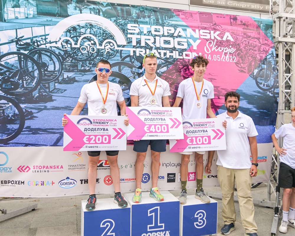 Триатлонецот Борислав Палашев, сениор од клубот „Палашев“ од Пазарџик, Бугарија и јуниорката Магдалена Станковска од клубот „Триоги рејсинг“ од Скопје се победници на натпреварот Stopanska Triogy Triathlon што се одржа во саботата во Скопје. Трката од 750 метри пливање, 19 км. возење велосипед и 5 км. трчање, Палашев ја заврши за 55:31, а Станковска постигна време – 1:04:54.