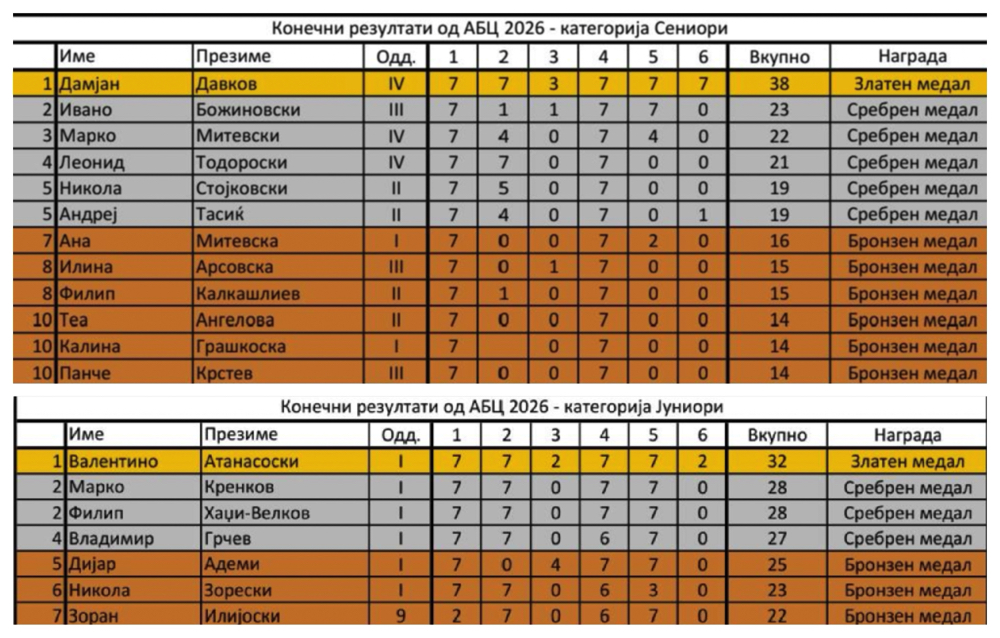 Дамјан Давков кај сениорите, Валентино Атанасоски кај јуниорите ги освоија првите места, односно златен медал на 7. Меморијален математички натпревар …
