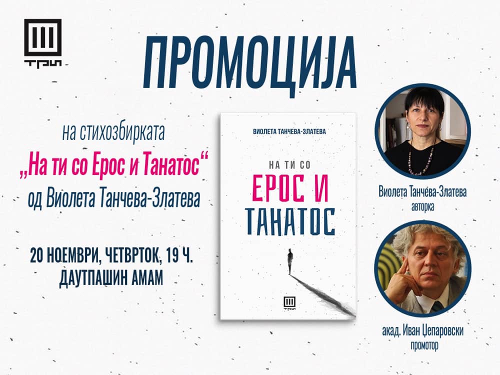 Во Даут-пашиниот амам во Скопје, вечерва во 19 часот ќе се одржи промоција на најновата поетска книга на Виолета Танчева-Златева, …