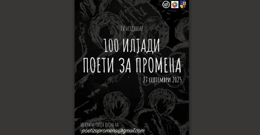 Mанифестацијата „100 000 поети за промена“, во соработка со здружението „Контекст – Струмица“ распишува поетски конкурс за јубилејното 15. издание …