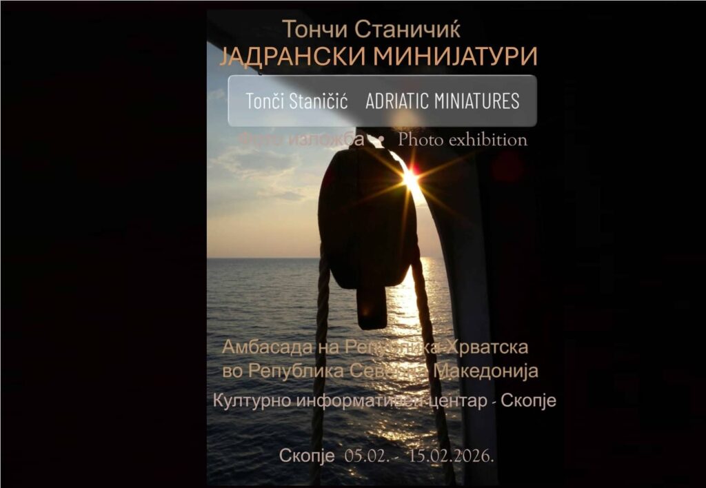 Во Културно-информативниот центар во Скопје вечерва во 18.30 часот ќе биде отворена изложбата на фотографии „Јадрански минијатури“ од Тончи Станчиќ. …