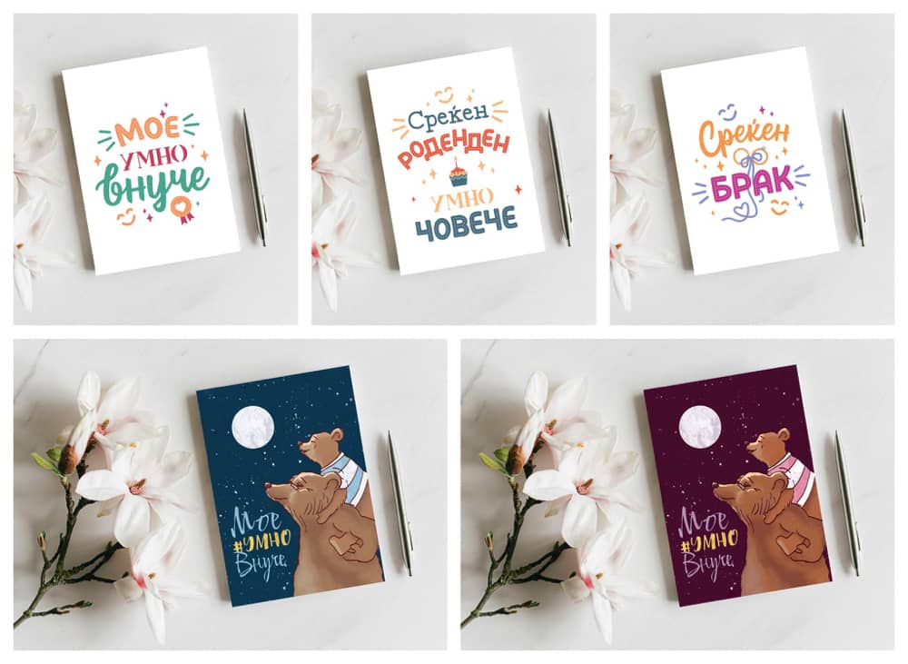 Имаме и серија намената за младите, како честитката „Мојот брат е поумен од твојот брат“. Во знак на поддршка на родовата еднаквост ја создадовме „Умна жена брег рони!“