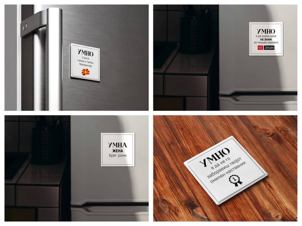 Магнетите се дел од кампањата „УМНО е…“. Тие носат различни универзални и едукативни пораки: „Умно е да ја сакаш и чуваш Македонија“, „Умно е да не го заборавиш твојот омилен наставник“, „Умно е да знаеш дека не знам се пишува одвоено“…