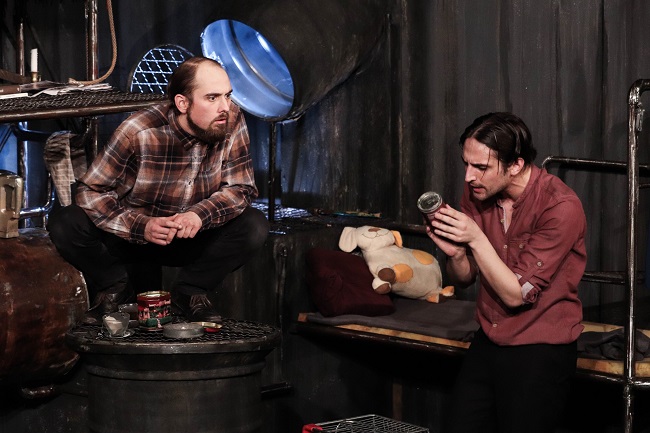 Мартин Манев создал сценографија која неверојатно се вклопува во просторот и пред сè е многу функционална. Актерите спретно се движат во тесниот простор опружен со смрадлива реа, со беда, цевки, сиромаштија.