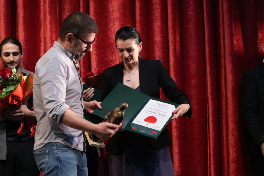 – Медеја го има само насловот и сите референци што ги носи текстот на Еврипид, но оваа Медеја е млад човек во странска земја кој се соочува со денешни реални проблеми и токму поради тоа е големината на оваа претстава. Среќна сум што ја добив наградата која доаѓа во мој тежок животен период – рече Чоревска.