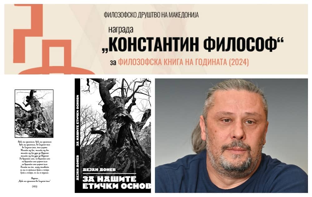 Проф. д-р Дејан Донев за студијата „За нашите етички основи“ е добитник на наградата „Константин Филозоф“ за филозофска книга на 2024 година што ја доделува Филозофското друштво на Македонија. Наградата се доделува во три категории: за животно дело, за филозофска книга на годината и за млад филозофски истражувач. На Донев наградата ќе му биде врачена на 10 март на Филозофскиот факултет во Скопје.