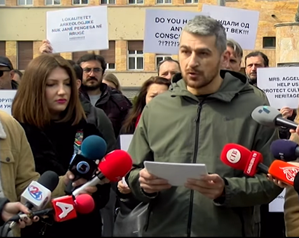 Археолози од Скопје, Охрид, Струмица, Штип, Куманово и други градови од земјава со транспаренти протестираа пред Собранието. На македонски, албански и на англиски јазик тие порачаа: „Дали воопшто имате совест? Археолошките локалитети не се пречки на патот. Археолошките локалитети не се долна облека. Вандали од 21 век. Нели ќе одевме во ЕУ???“. Мирниот протест го организираа Македонското археолошко друштво и Македонскиот национален комитет на ИКОМОС. Предлогот за измени на ЗЗКН го предложи пратеничката група на ДУИ. Во пакетот беа предложени измени на уште осум други закони кои треба да ја олеснат изградбата на автопатите и тие вчера ја поминаа првата фаза од гласањето. Според предлог-измените на ЗЗКН, при случајно археолошко отритие за време на градежните активости ингеренциите требаше да припаднат на надлежниот инженер, наместо на надлежната инстутуција за заштита на културното наследство или Министерството за внатрешни работи, како што предвидува постоечкиот закон.