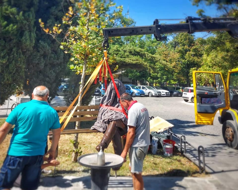 Бронзената скулптура на Горан Стефановски утрово го виде небото над Дебар Маало. „По една година изработка, долги ковид-месеци во склад и неколку недели во кутија“, напиша Игор Стефановски, синот на Горан Стефановски. Автор на делото е реномираниот британски скулптор Стивен Мелтон.