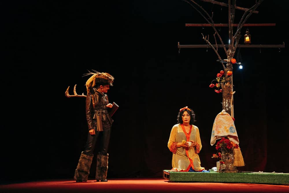 Таа говореше за текстот и неговата повеќеслојност. Нејзина партнерка во сцената е Нина Елзесар, која го толкува ликот на ловецот.