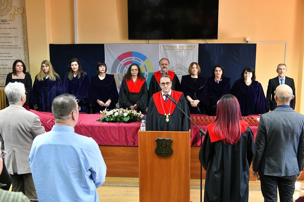 Деканот на ПМФ, проф. д-р Даворин Трпески, ги промовираше новите 23 магистри и им врачи признанија на најдобрите студенти. Дополнително, на секој од институтите на факултетот беа доделени и дипломите на дипломираните студенти.