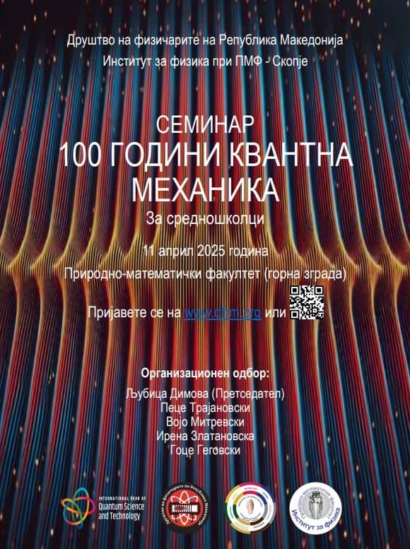 – Семинарот „100 години квантна механика“ е првиот од неколкуте настани, коишто Институтот за физика при ПМФ – Скопје заедно со Друштвото на физичарите на Република Македонија (ДФРМ) планираат да ги организираат во текот на 2025 година – Меѓународната година на квантната наука и технологија. Имено, во 1925 година квантната механика е поставена како комплетна теорија, со двете значајни математички формулации, односно матричната механика на германскиот физичар Вернер Хајзенберг и малку подоцна, брановата механика на австрискиот физичар Ервин Шредингер. Околу 1925 година се случуваат и други значајни откритија, коишто го менуваат погледот на научниците кон микросветот.