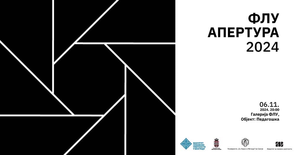 Во галеријата на Факултетот за ликовни уметности во Скопје (Педагошки факултет) вечерва во 20 часот ќе биде отворена изложбата „ФЛУ Апертура 2024“ на Факултетот за ликовни уметности во Белград. Ќе бидат изложени дела од шестмина одбрани уметници кои во моментов се на докторски уметнички студии на ФЛУ во Белград. Селектор на изложбата е доц. д-р Немања Николиќ. На отворањето ќе присуствуваат деканите на двата факултета, професори и дел од учесниците на изложбата. Изложбата ќе биде отворена до 26 ноември.