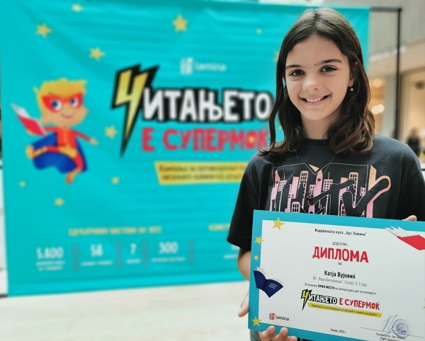Оваа ми беше прва награда досега и бев многу изненадена затоа што не очекував да стигнам до таму, да освојам прво место, вели шестоодделенката Катја Вујовиќ која летово победи на конкурсот „Читањето е супермоќ“