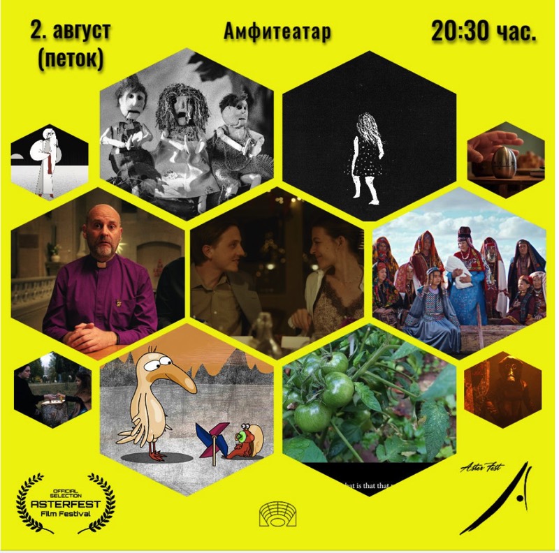 Веднаш потоа следуваат уште десет ексклузивни кратки филмови: европската премиера на „Избавени од злотворот“ на Бенџамин Хекман и Лук Сарџент и „Мигови“ на Катја Фридрих, „Фортисимо“ на Виктор Цеска, „Солени животи“ на Рустам Мелиев, „Гнездо“ на Настимир Цачев, „За живеењето“ на Сезер Салихи, „Навја“ на Ана Шиленкова, „Почест“ на Мат Цискас, „Прошетка“ на Елеонора Венинова и „Ги знаеш правилата“ на Овен Тут. Авторите на повеќето филмови пристигнаа во Струмица и тие ќе ѝ се претстават на астерфестовската публика.