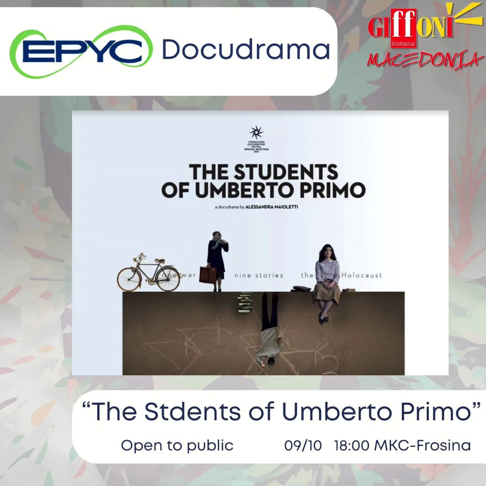Во 15.45 часот во киното „Фросина“ ќе следи втората ЕПИК панел дискусија, на тема „Иновативна едукација: Предавање вредности преку филм и креативност“. Ќе бидат разменети искуства за иновативни едукативни модели и потенцијалот на филмот и уметностите во процесот на пренесувањето на вредностите“. Џифонци ќе можат да ја проследат проекција на краткиот филм „Животот на една даска“ на младата Леона Јариќ, по што ќе следува разговор со авторката. Во 18 часот ќе следува проекција на докудрамата „Учениците од Умберто Примо“, грчко-италијанска копродукција во режија на Алесандра Мајолети. Филмот зборува за нераскажаните приказни на девет еврејски ученици што учеле во италијанското училиште „Умберто Примо“ во Солун за време на нацистичката окупација и е базиран на архивски материјал откриен во 2003 година од италијански професор и сведочења на преживеаните протагонисти. Попладневните проекции се од отворен карактер.