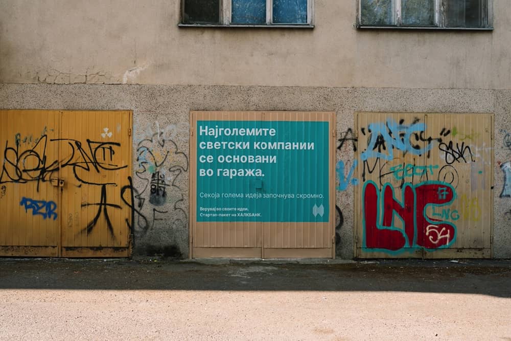 Но, она што ја направи кампањата за стартап една од најдобрите е тоа што оваа кампања употреби креативни решенија што знаат да изненадат, буквално, од зад аголот каде што најмалку очекувате. На навистина виртуозен, но истовремено и ненаметлив начин, креативните тимови на Халкбанк и Меккен Скопје го препознаа просторот гаража како место каде што започнува сè: љубов, музика, идеи, бизнис.