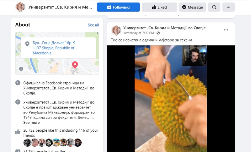– Се извинуваме за настанатите непријатности и се оградуваме од сите објави на неа, до повторно преземање на администрирањето од страна на службите на УКИМ. Преземени се сите активности во согласност со Статутот на УКИМ, позитивната законска регулатива во државата и правилата на работење на „Фејсбук“ – велат од УКИМ.