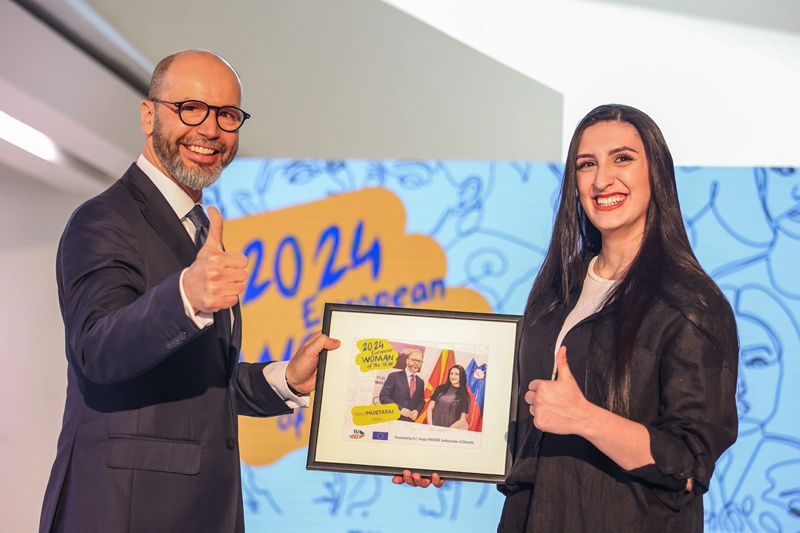 Седум инспиративни жени кои со својата работа го подобруваат животот во својата заедница беа претставени денеска во Националната опера и балет, на манифестацијата „Европска жена на годината“ за 2024 година, што ја организираше Делегацијата на Европската Унија. Петмина амбасадори, претставник на Европската инвестициска банка и на Обединетите Нации, ги промовираа жените номинирани за наградата: Далиборка Златева, директорка на Здружение на лица со церебрална парализа и други попречености од Велес, Ана Витанова-Рингачева од Струмица, професорка на Катедрата за македонски јазик и книжевност на Филолошкиот факултет при Универзитет „Гоце Делчев“, Елмедина Абдулахи, раководителка на библиотеката при Универзитетот „Макс ван дер Штул“ од Тетово, адвокатката Катерина Котеска-Стисниовска, специјализирана во семејно право од Битола, Мариа Дуда Дибиаџо од Крива Паланка, пионер на хипотерапијата и терапија со коњи кај лицата со попреченост и новинарката Алмира Фасљии Муарем, активистка за правата на Ромките од Скопје и каратистката Греса Мустафаи од Струга. Европските жени беа избрани од седумте градови каде што работат „Јуроп хаус“ во Северна Македонија.