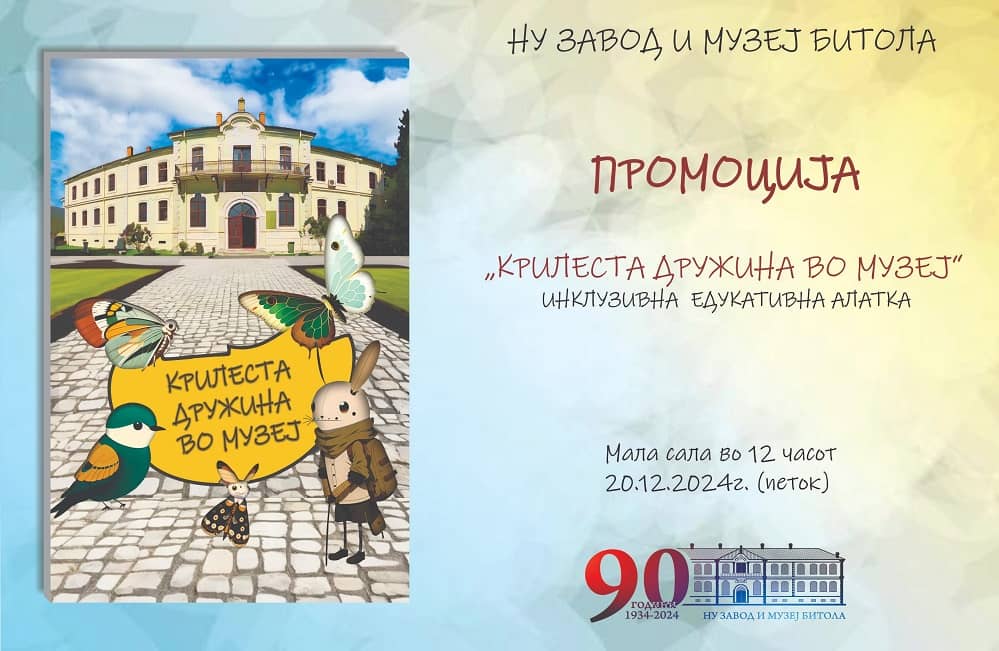 Во Заводот за заштита на спомениците на културата и музеј во Битола денеска во 12 часот ќе се одржи промоција на инклузивната едукативна алатка „Крилестата дружина во музеј“. Еден час подоцна ќе бидат презентирани тактилни слики, тактилни копии од експонати од музејската поставка на Заводот и музеј и две копии/ фрагменти од мозаици.