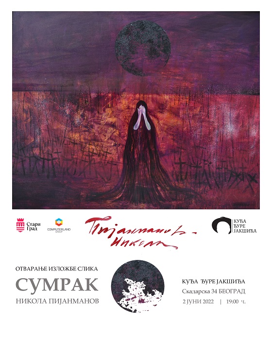 Во галеријата на „Куќата на Ѓура Јакшиќ“ во Белград, вечерва во 19 часот ќе биде отворена самостојна изложба на уметникот Никола Пијанманов. Изложбата е насловена „Самрак“ и на неа ќе бидат поставени триесетина дела од најновиот опус на авторот. Книжевниот критичар и писател Далибор Плечиќ, напиша во катологот за изложбата:
