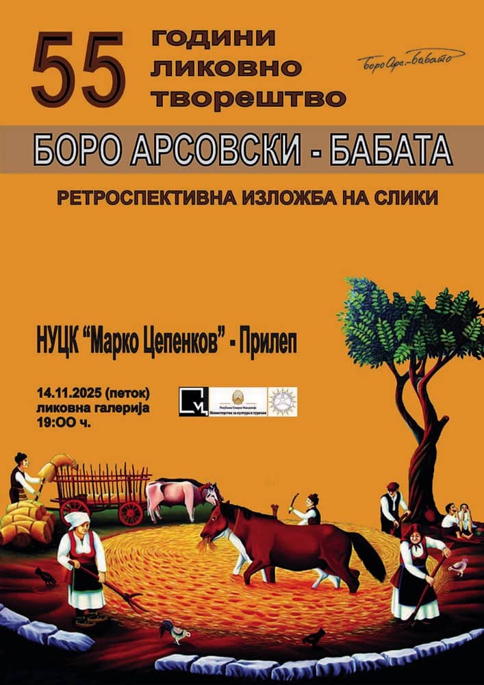 Во Ликовната галерија при Центарот за култура „Марко Цепенков“ во Прилеп вечерва во 19 часот ќе биде отворена ретроспективна изложба на слики на уметникот Боро Арсовски – Бабата. Со изложбата авторот одбележува 55 години уметничка дејност.