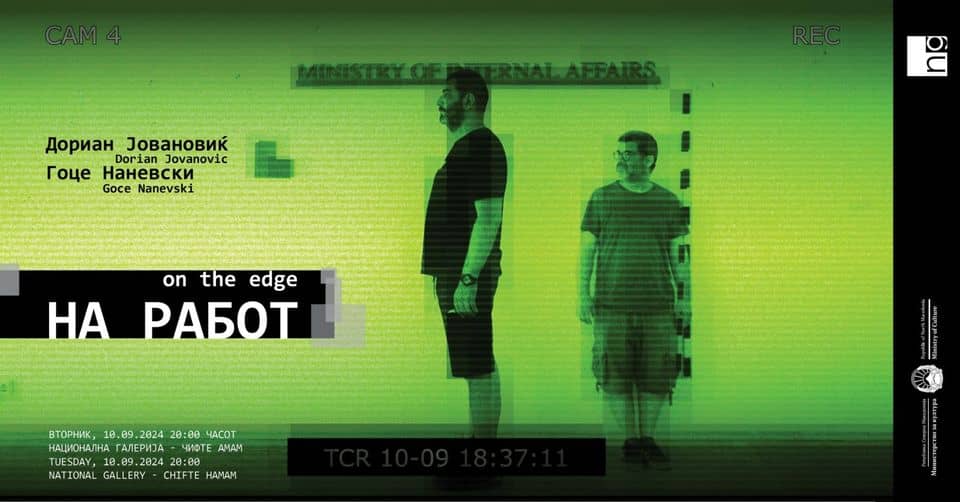 Необезбеден градежен работник чекори на греда на објект во изградба, додека трае митингот на коалицијата „Заедно за европска Македонија“ пред седиштето на Делегацијата на Европската Унија во Скопје пред шест години. Оваа блиц-сцена е појдовна точка за мултимедијалниот уметник Гоце Наневски и музичарот Дориан Јовановиќ да почнат да работат на проектот „На работ“ кој вечерва во 20 часот ќе биде претставен во Чифте амамот во Старата скопска чаршија. Куратор на проектот е Ана Франговска, кустос-советник во Националната галерија на Македонија. Наневски и Јовановиќ ја појаснуваат својата ангажирана контекстуална реакција на општествено-политичкиот галиматијас кој секојдневно го живееме откако сме земја во транзиција, вели Франговска.