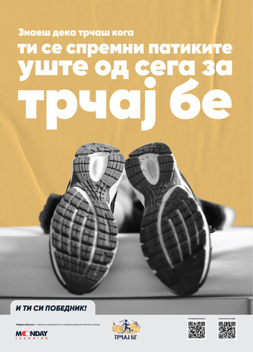 „Monday Learning remote“ е тренинг центар за програми од областа на графички дизајн и дигитален маркетинг. Нивната мисија е да профилираат луѓе кои учат за да создаваат, а “оваа генерација млади дизајнери најдобро го покажува тоа, преку кампањата за Трчај бе.“