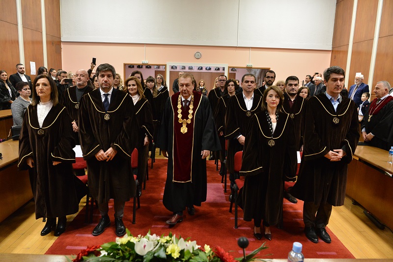 Докторите на науки ги промовираше проф. д-р Никола Јанкуловски, ректор на УКИМ.