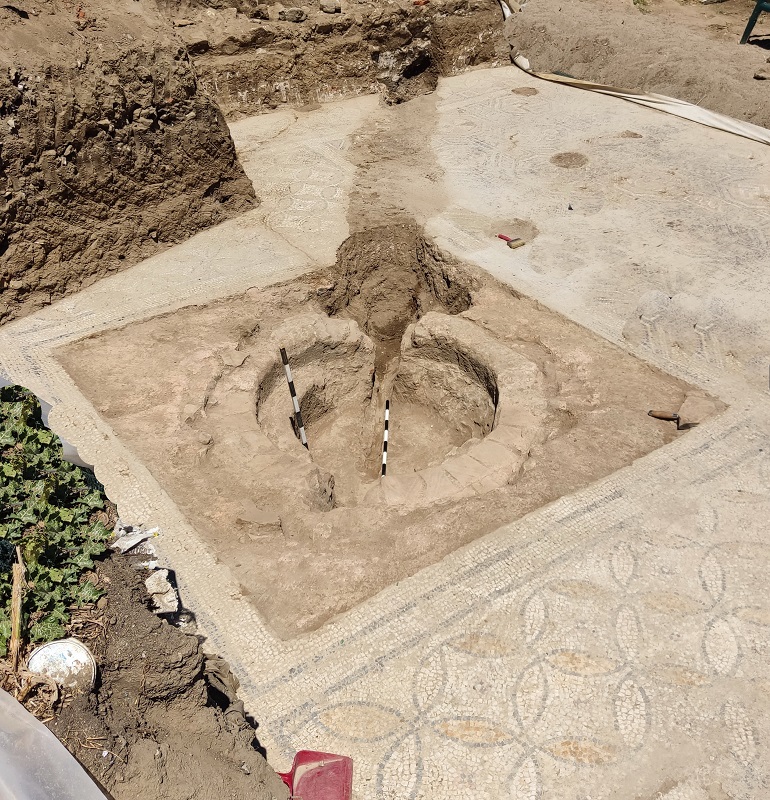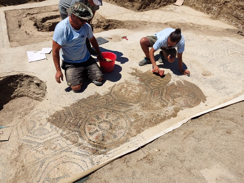 – Целата просторија е покриена со мозаичен под изработен во опус тесалатум (opus tessalatum), на кој се претставени различни мотиви како соломонов чвор, стилизирани малтешки крстови, стилизирани свастики, плетенки, соларни мотиви итн. Некои од овие мотиви ги забележавме и минатата година, но има и многу нови. Сите мотиви се ставени во рамка која е околу 1 метар од ѕидовите, а рамките се декорирани со геометриски мотиви. Ѕидовите од просторијата биле украсени со дебел слој на малтер кој бил боен со широк колорит на бои како црвена, зелена, сина, окер итн. – објаснува Ивановиќ.