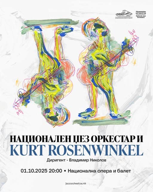 Неповторливо музичко доживување најавува Националниот џез оркестар вечерва во 20 часот во Национална опера и балет на концертот со еден од најзначајните современи џез-гитаристи Курт Розенвинкел и диригентот Владимир Николов. Билетите сè уште се во продажба, но во огреаничен број и може да се купат на https://mktickets.mk/event/kurt-rosenwinkel/. Студентите и пензионерите денеска можат да ги набават билетите за половина цена, еден час пред почетокот на концертот на билетарницата на НОБ.
