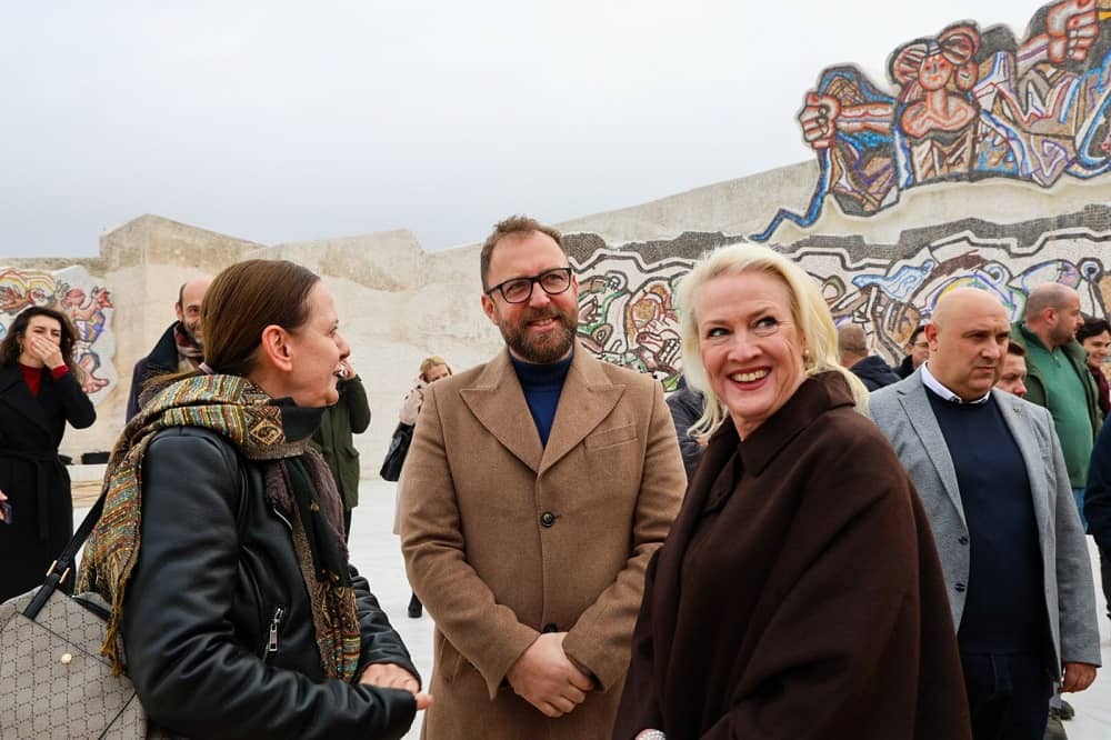 – Каков начин да се помине денот! Тука сме покрај овој величествен објект. Оваа програма ми е навистина важна и горди сме што помагаме да ги одржуваме овие објекти живи. Навистина културата допира до места каде што политиката не може – рече таа.