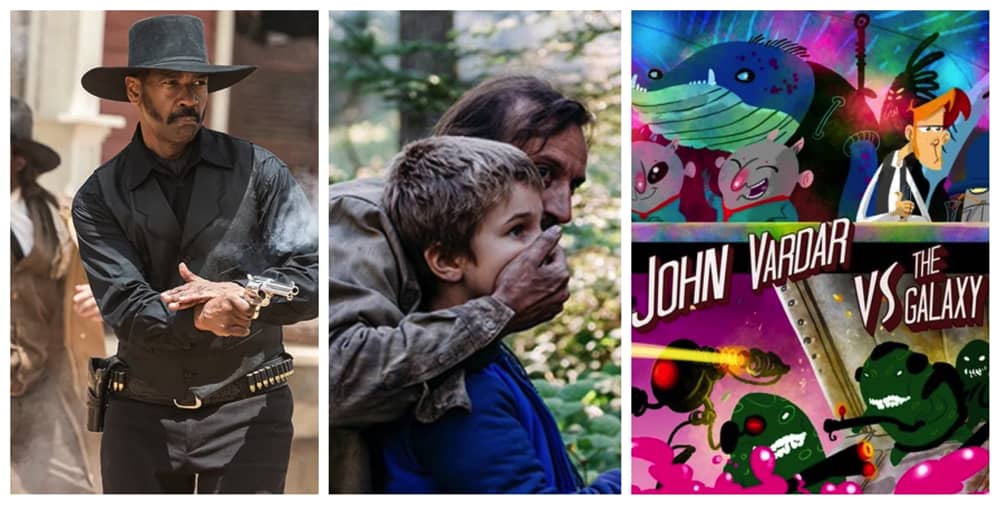 „Седумте величестевени“ е од 2016 година, а главните улоги ги толкуваат: Дензел Вашингтон, Итан Хоук, Питер Скарсгард и др.