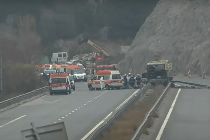 Седуммина патници ја преживеаја стравотната автобуска несреќа во која загинаа 46 државјани на Македонија на автопатот „Струма“ во Бугарија. Медиумите јавуваат дека меѓу загинатите има и деца. Преживеаните се надвор од животна опасност. Несреќата се случила два часа по полноќ, кај селото Боснек, околу 40 километри јужно од Софија. Државниот врв веќе е во Софија.