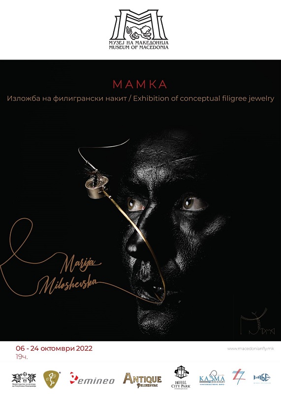 Во Музејот на Македонија вечерева во 19 часот ќе биде отворена изложбата на концептуален филигрански накит со наслов МАМКА на уметницата и етнолог Марија Милошевска. Таа веќе дваесетина години го промовира филигранскиот занает преку современиот концепт низ различни медиуми како накит, инсталации, објекти, перформанси и видео арт. Инспирирана од најстарото пишано сведоштво за потеклото на вештачката рибарска мушичка, во светот позната под името Macedonian fly, таа во 2017 го создава брендот „МАкедонска МушичкА – МАМКА“ кој го прикажува филигранскиот концепт како пристап, практика за накит и критички дискурс во креирањето на културата.