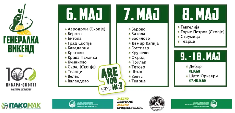 На 8 мај ќе се собира отпадот во Гевгелија, Ѓорче Петров, Струмица и во Театрце, на 9 мај во Дебар, а на 17 и 18 мај во Шуто Оризари.