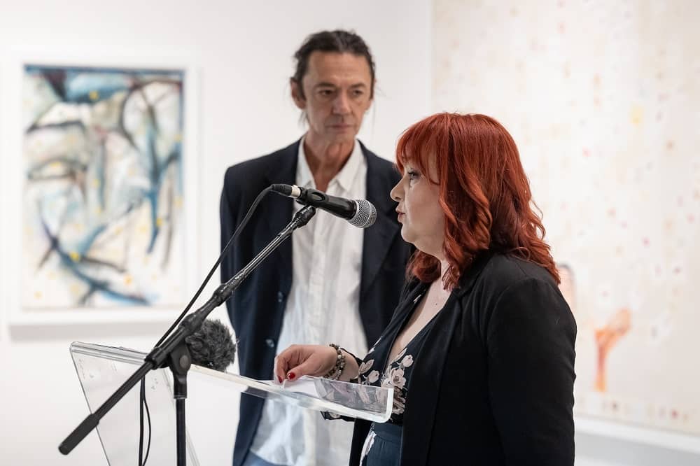 Тој ја поздрави публиката со надежа сите повторно да се соберат за 10-15 години. Во преполната сала се обрати Дита Старова-Ќерими, според која изложба не е само прослава на уметноста, туку почит кон креативноста, страста, искреноста, доследноста и визијата на уметникот чии дела оставиле неизбришлива трага на македонската ликовна сцена.
