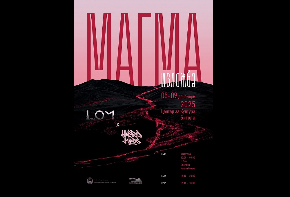 Во Центарот за култура во Битола вечерва во 20 часот ќе биде отворена изложбата „Магма“. Неколкумина уметници со заедничка визија инспирирана од македонската поезија, емоциите и колективните спомени ја спојуваат својата енергија и креираат урбани дела што поврзуваат, раздвижуваат и го носат жарот на современото културно јадро.